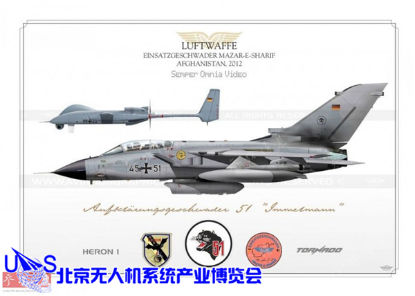 图为网上绘制的德国空军第51战术侦察联队(又称”殷麦曼“联队)于2012年在阿富汗执行作战任务的侧视图,可见该联队同时使用了苍鹭1无人机和挂载侦察吊舱的”狂风“攻击机。