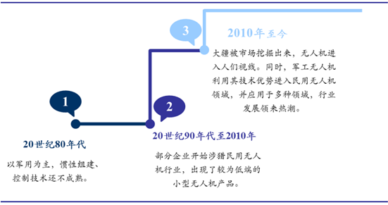 我国无人机经历了从军用到民用这一发展历程,于2010年之后迎来热潮