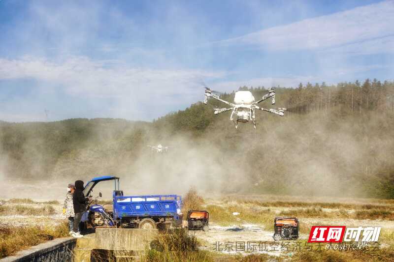 红网时刻新闻11月21日郴州讯(通讯员 陈勇 何禹军 史纯华)11月20日,桂阳县添诚合作社在正和镇极乐村、共和农场罗家村等村开展土壤调理剂播撒作业,无人机“上岗”撒石灰助力农业生产。