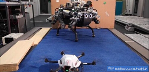 无人机帮助四足机器人“探路”