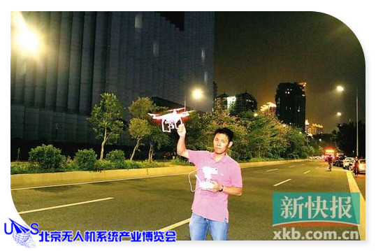 秋高气爽,江风习习,周日的广州塔对开的江边码头尽管有不少游客,但地方空旷,还是让高级摄影师陈志强选择了在这里放无人飞机进行航拍,“我想拍珠江新城和小蛮腰这条中轴线的夜景,这个位置正好,都可以拍到。”陈志强告诉记者。只见他先是从车后尾厢里拿出无人飞机,这是个只有两三只手掌大小的“家伙”,不足三斤,一只手就能轻易拎起来。