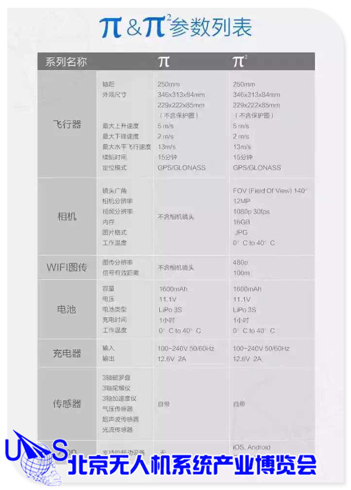 π个头小巧,轴距250mm,重480g,下方有光流技术用来定位的摄像头,根据前方有无镜头分单飞版和畅飞版,众筹售价在 899 元和 1399 元,摄像头为 1200 万像素,画质可达1080p,有白、粉、蓝、黄四种颜色。