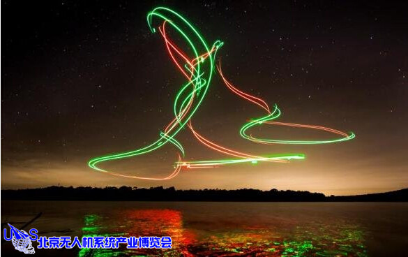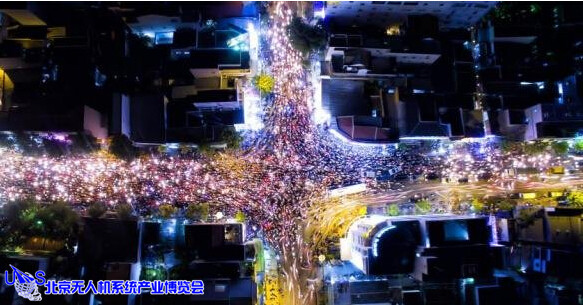 作者用一架无人机在昏暗的环境下载长曝光下用灯光画出了一颗圣诞树