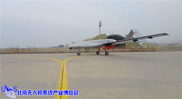 Bayraktar TB2攻击型无人机进行地面展示。