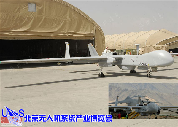 图为部署在阿富汗巴格拉姆空军基地的法国空军“雪鸮”(Harfang)无人侦察机,该机实际是基于以色列“苍鹭”I型无人机改进而来。从2009年2月开始,该型机在阿富汗主要负责支援法军的维和行动。