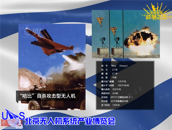 除了传统的无人侦察机外,IAI还于20世纪90年代推出了独特的“哈比”(鹰身女妖)反辐射无人机(巡飞弹),其最大巡航时间6小时,配备被动雷达寻的头,在发现目标后,会自主选择以自杀俯冲攻击的方式与目标同归于尽。