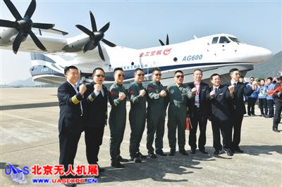 AG600完成首飞后,机组人员等与飞机合影留念 新华社记者 梁旭摄