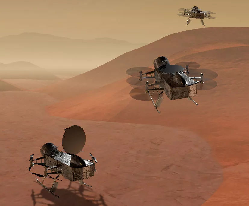 当考虑到如何探索 Titan 的表面时,奇异特性开辟了许多创造性的选择,而不是像火星那样。Titan 的低重力和高大气密度有利于飞行,这将使探索机器人比固定着陆器或漫游者更快地访问更多的科学兴趣点。过去,美国宇航局曾考虑过直升机、热气球和飞机之类的东西,但在过去的十年里,多旋翼无人机已经成为可操纵和可靠的机器人飞行的标准。根据 APL 的说法,Titan 实际上是「太阳系中最容易飞的四轴飞行器」。
