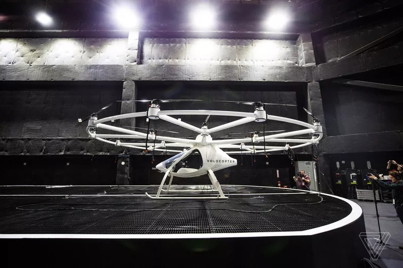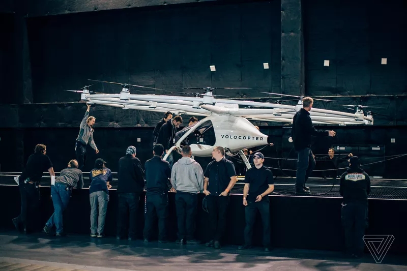 CES演讲前工作人员对Volocopter VC200无人机进行彩排/图 来源:The Verge