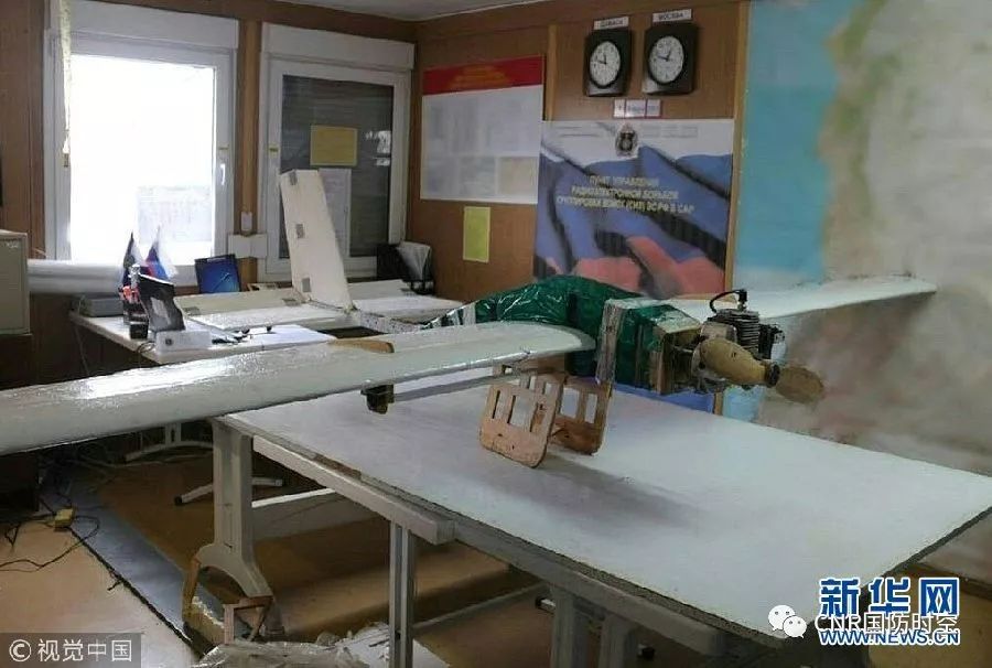 2018年1月9日讯,俄罗斯国防部“脸书”页面展示的疑似近日攻击俄驻叙利亚基地的无人机。1月8日,俄罗斯国防部发布消息称,俄驻叙利亚基地首次遭大规模无人机攻击,但未造成损失。(图片来源:视觉中国)