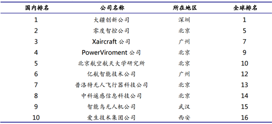 全球十大无人机中国占五席