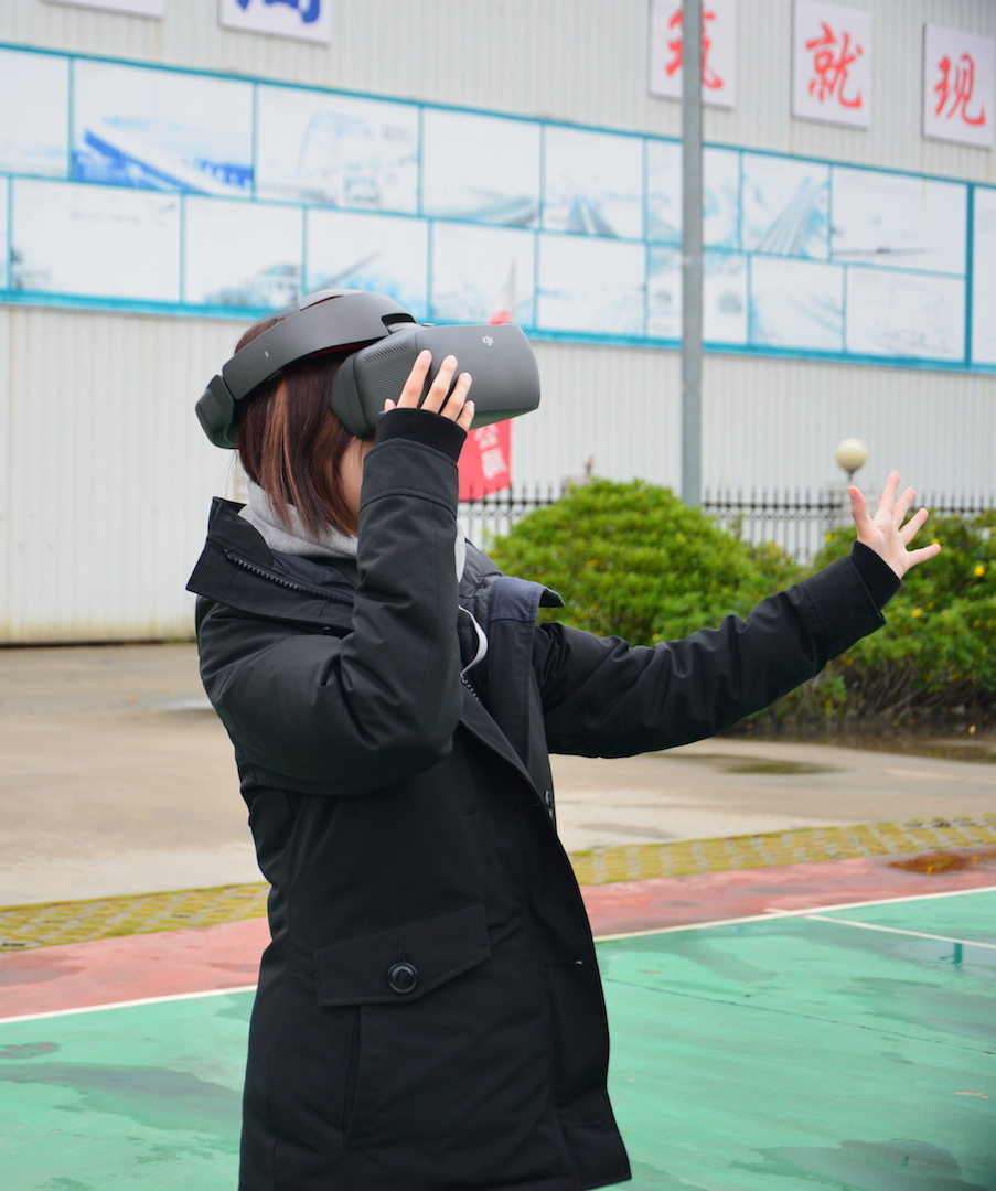 值得注意的是,当日环球网记者还携带了同样由国内消费级无人机厂商大疆创新自主研发的Goggles飞行眼镜。据了解,这一款可以配合大疆无人飞行器并以第一人称视角(FPV)来观看由无人机实时图传回来的航拍画面。当goggles与无人机连接后,带上后通过眼镜看到的画面既是飞行器相机上的视角,画面非常真实且震撼。