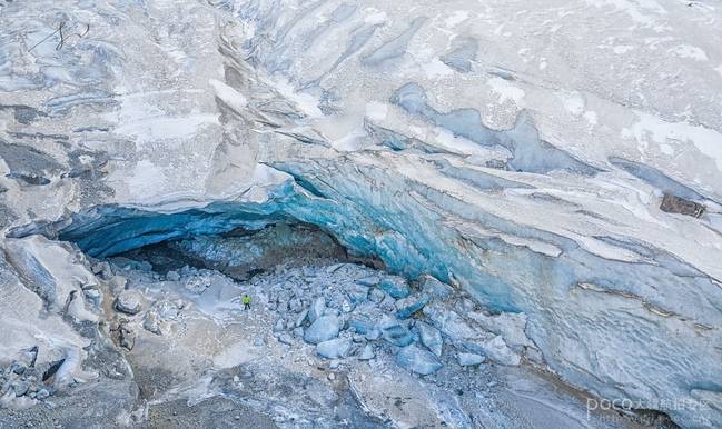 而冰川的拍摄就不一样了,需要“亲密接触”,距离的拉近才能拍摄到冰川的细节,这才是它迷人的地方,尺度、线条呈现出来的美感。所以,拍摄冰川的时候准备要更充足,装备需要更为便携,大疆的“御”在这里就发挥出优势了。此外,拍摄时如果需要深入到冰川的腹地,以防万一,要做好保险安全等措施,最好是两三个人一起前往,并且准备上专业户外装备,如冰刀、冰爪之类的。