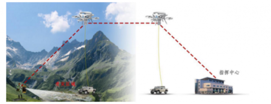通讯通视距离公式:D=4.12*(sqrt(H1)+sqrt(H2)),其中D是通视距离(km),H1是飞机高度(m)即基站的高度,H2是通讯终端高度。可见,要想通讯距离远,就得把我基站升得更高。目前大多数应用是把基站放在车载的桅杆顶上。系留300米,信号辐射可达80KM。相对于100米高度的系留无人机系统,新型的300米系留无人机挂载通讯基站可将通讯覆盖范围从半径50公里提升到80公里。