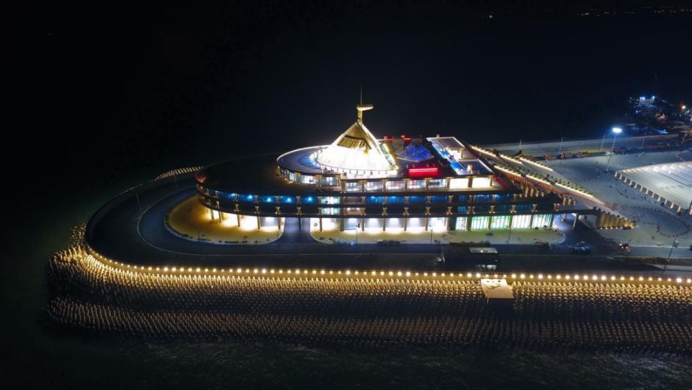 两座人工岛各10万平方米,国内最大外海清水混凝土建筑,伶仃洋上的“最美地标”。