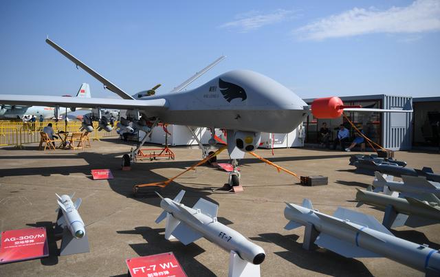 新华社照片,珠海(广东),2018年11月7日 未来十年全球无人机系统领域产值累计将超4000亿美元 这是航展上的天鹰无人机(11月5日摄)。 在6日开幕的第12届中国国际航空航天博览会上,相关机构发布报告预测,未来十年,全球无人机系统领域产值年均增速将保持20%以上,产值累计将超过4000亿美元。 新华社记者 邓华 摄