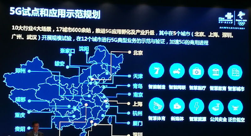 中国联通5G试点和应用示范也走在行业前列,面向10大行业4大场景,在17个城市规划600余站点,推进5G应用孵化及产业升级,其中在5个城市(北京、上海、深圳、广州、武汉)开展规模试验,在12个城市进行5G典型业务的示范与验证,加速5G商用进程。