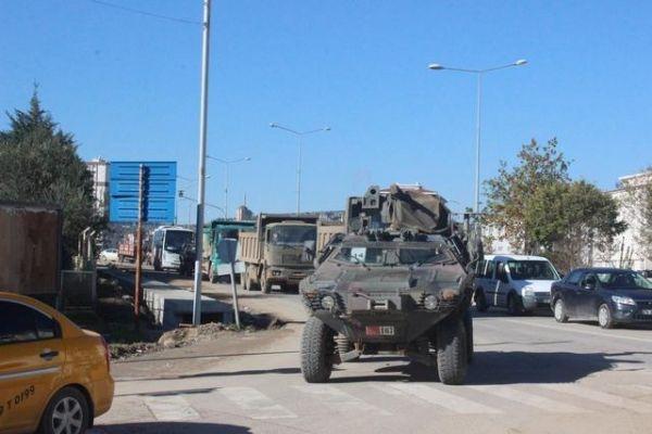 12月22日,在土耳其南部靠近叙利亚边境的基利斯,土军车队在道路上行进。