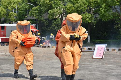 15时45分,某化工厂发生爆炸起火,现场浓烟滚滚,上海市人防化学救援分队携带相关装备第一时间赶赴事故现场。