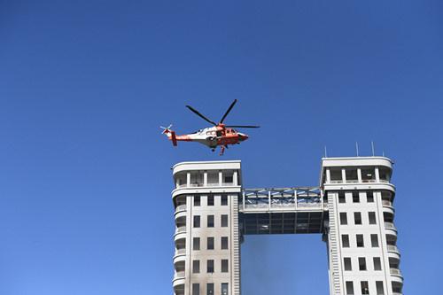 随着一阵飞机的轰鸣声,一架隶属于上海金汇通航的AW139医疗构型救援直升机正飞临救援现场,准备执行转运危重伤员任务。这家公司形成飞行、机务、运控、绞车手、救生员、医务等多专业协同、确保“平时服务、急时应急、战时应战”的专业航空救援队伍。目前已在全国28个省、市、自治区布机,并联合全国1387家120急救中心和医院打造立体化的空中救援网络,还在上海成立了全国首支民企航空专业民兵应急救援队伍。