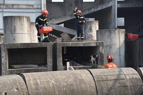 “接上级指令,迅速进入倾倒建筑物残骸内开展搜救行动。”现场指挥员传达命令,来自供电、供水、燃气、环境监测、卫生防疫等八支队伍的近百名专业人员忙碌开来。