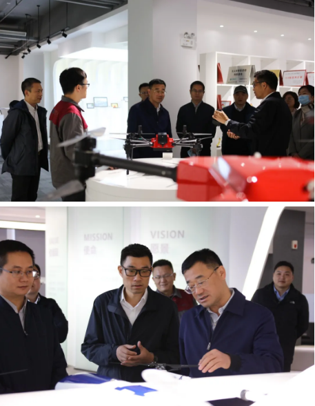 在易瓦特无人机展厅,副总经理余泽轩等人向邬捷龙董事长一行就易瓦特发展历程、企业文化、荣誉资质、核心技术、无人机行业应用的发展情况进行了一一详细介绍。