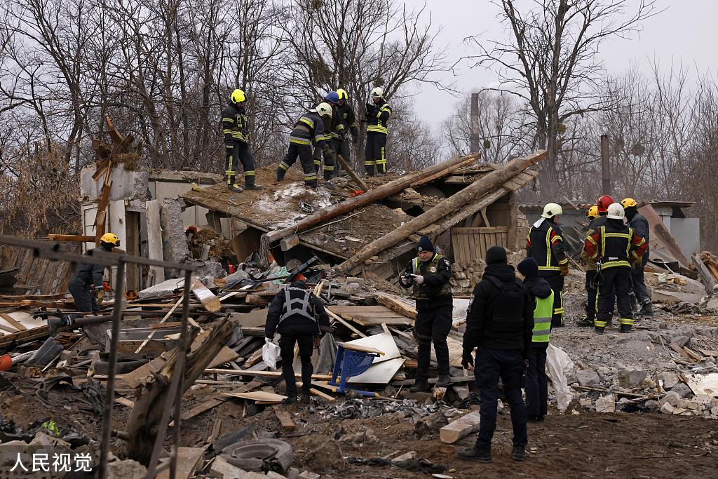 当地时间2022年12月29日,乌克兰基辅,救援人员在基辅一个严重受损的居民区工作。人民视觉 图