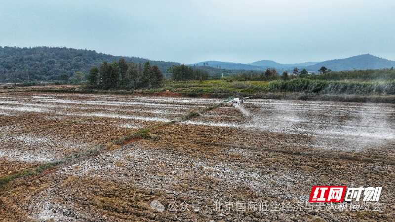 红网时刻新闻11月21日郴州讯(通讯员 陈勇 何禹军 史纯华)11月20日,桂阳县添诚合作社在正和镇极乐村、共和农场罗家村等村开展土壤调理剂播撒作业,无人机“上岗”撒石灰助力农业生产。
